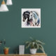 Poster Cavalos Pretos e Brancos em Aquarela