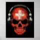 Pôster Caveira de Dj suíça personalizável com Fones de ou
