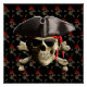 Crânio clássico original e Crossbones, O Jolly Rodger, com bandana vermelha e chapéu pirata preto.