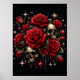 Poster Caveiras Douradas & Rosas Vermelhas Brilho Glamour