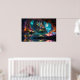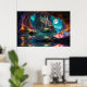 Cristais e árvores brilhantes em uma caverna aquática sob uma lua de cheio Arte AI criada por minx267