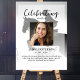 O pôster memorial perfeito para cumprimentar familiares e amigos ao entrarem na celebração da vida de seu ente querido. O design apresenta uma foto pessoal quadrada, 5 linhas de texto personalizado e uma foto de fundo de um cavaleiro saltando. Você pode facilmente trocá-la por sua própria foto de fundo. Clássico, porém único - este modelo é muito fácil de personalizar e também será uma lembrança memorial maravilhosa.