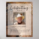 O pôster memorial perfeito para cumprimentar familiares e amigos ao entrarem na celebração da vida de seu ente querido. O design apresenta uma foto pessoal quadrada, 5 linhas de texto personalizado e uma foto de fundo de botas e chapéu de cowboy. Você pode facilmente trocá-la por uma foto de fundo própria. Clássico, porém único - este modelo é muito fácil de personalizar e também será uma maravilhosa lembrança memorial.