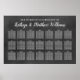 Um design de pôster de assentos de casamento simplesmente elegante apresenta um monograma dos nomes da noiva e do noivo e texto de modelo personalizado para vinte e um (21) mesas com nomes de convidados. Quadro negro rústico e esquema de cores branco podem ser personalizados para combinar com suas cores.