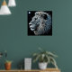 Arte Ai representando um leão preto e branco numa noite mística com fundo estrelado.