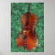 Esta bela e grande pintura de um violoncelo contra um fundo de abstrato verde faz uma bela imagem musical de instrumento.