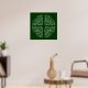 Motoses celtas tradicionais dispostas na rodada para formar uma cruz no centro. Branco em verde ou altere a cor de fundo para sua preferência. Canvas de arte de impressão mostrada; altere o tipo de papel se preferir.