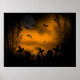 Pôster Cemitério de Halloween com Morcegos e Pedras Tomba