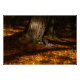 Cena da floresta com árvore e esquilo, o ouro deixa-se assado à luz do sol enquanto o esquilo pára de procurar por comida por um momento para posar para a câmera
