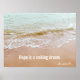 "A esperança é um sonho de despertar", citação do filósofo grego Aristóteles numa fotografia aproximada de praia do mar suavemente se quebrando na areia. Pode substituir ou remover facilmente o texto, se assim o desejar.