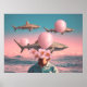 Poster Cena de Sonho Surreal com Tubarões e Balões