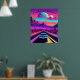 Viajantes são Sonhadores! Texto editável. Arte de vaporwave IA impressionante com cores psicodélicas. Única. Viajando pelas estradas do deserto em um cadillac. Em direção à lua!