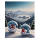 Um charmoso trabalho de arte de neve se globa em uma paisagem de montanha de inverno, perfeita para decoração festiva.
