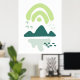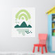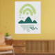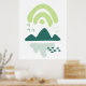 A arte do muro da Trendy apresenta montanha abstrato e arco-íris com reflexo de lago.