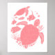 Poster Cena do Oceano Rosa Rubor com Peixes e Tartarugas