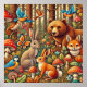 Poster Cena Florestal Vibrante Com Vida Selvagem
