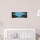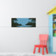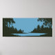 Arte de parede de paisagem gráfica incluindo uma cena de natureza rústica com corpo de água em cores preto e azul. Perfeito para decoração de casa ou escritório.