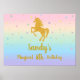 Fundo para fotos de festa do unicórnio com ícones havaianos fofos, personalizado com as saudações, nome e idade do seu filho,