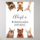 Sinal bonito e divertido para a festa de aniversário do tema da floresta do seu filho! É uma placa de poster do centro de adoção para uma atividade de aniversário para adotar animais recheados. Tenha uma variedade de animais recheados como favoritos para festas para as crianças irem para casa e "adotarem um animal de estimação." Apresenta ilustração de guaxinim, raposa, veado, coruja, urso e coelho. O texto diz "adotar um animal da floresta".