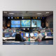 O diretor de voo Tony Ceccacci (à esquerda) e o astronauta Dan Burbank, o comunicador de espaçonaves STS-125 (CAPCOM), monitoram dados em seus consoles na sala de controle de voo do ônibus espacial no Centro de Controle de Missão no Centro Espacial Johnson da NASA durante o terceiro dia de voo. O telescópio espacial Hubble, enfrentado pelo sistema manipulador remoto (RMS) do Space Shuttle Atlantis, é visível em uma das grandes telas.