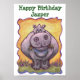 Convites de Aniversário Personalizados, Cartões, Presentes, Lembranças de Festa e muito mais do Desfile de Animais com Hipopótamo Fofo são para o lado divertido de você com nossa arte original de um hipopótamo cor-de-rosa e cinza caprichoso em pé na grama verde da savana com um céu amarelo e laranja texturizado e uma borda roxa ondulada e divertida. Pintado por nossa talentosa artista infantil, Traci Van Wagoner, nossos divertidos artigos de festa com tema de animais da savana são perfeitos para amantes de hipopótamos de todas as idades. Em muitos de nossos artigos de festa com animais selvagens caprichosos, você verá o cavalo-marinho fofo indo e vindo com essa divertida arte da cabeça do hipopótamo fofo na frente e a cauda do hipopótamo africano nas costas. Junte-se ao Desfile de Anim