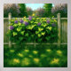 Trabalho de arte de algumas folhas e flores que crescem sobre uma cerca de piquete. Esta trabalho de arte vibrante captura a beleza serena de uma cena de jardim exuberante. Um arbusto de hydrangea florescente, que se rompe com aglomerados de flores roxas delicadas e folhas verdes vibrantes, derramares sobre uma cerca de piquete rústica. A luz do sol aplicada na folhagem e o prato cria uma atmosfera quente e convidativa. Ao fundo, matizes suaves de árvores florescentes adicionam profundidade e um toque de tranquilidade do sonho a esse cenário pitoresco. Esta peça traria um toque de frescura e charme pacífico para qualquer sala.