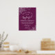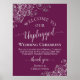 Este belo sinal "Desconectado" que serve como uma saudação agradável para seus convidados de casamento, ao mesmo tempo em que os solicita que desliguem seus telefones, câmeras e dispositivos, garantindo uma cerimônia contínua e ininterrupta. O cartaz apresenta uma magenta elegante ou roxa-cassis e design prateada com caligrafia cursiva graciosa e caramujos de folhas de cinza prateada e espirros enfeitando os cantos. A mensagem diz: Bem-vindo à nossa cerimônia de casamento desplugada. Por favor, desligue seus telefones, câmeras e dispositivos para que todos possamos desfrutar da cerimônia sem interrupções.