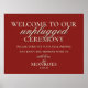 Defina um tom gracioso para sua cerimônia com este Velho Sinal de Cerimônia Vermelha Unplugada. Projetado com uma caligrafia refinada em fundo vermelho profundo e sofisticado, este cartaz gentilmente convida os hóspedes a estarem plenamente presentes desligando seus telefones e câmeras. Um toque clássico e ponderado para casamentos formais, este sinal combina tradição, elegância e intencionalidade — criando uma experiência serena e memorável de cerimônia.