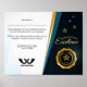Certificado universal de excelência ou apreciação com dourado falso e emblema estelar, basta adicionar texto personalizado e logotipo da empresa.