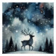 Um majestoso cervo permanece sob um céu invernal cintilante, enquadrado por pinheiros empoeirados de neve e árvores delicadas e nuas. Os azuis profundos da meia-noite se desvanecem em brancos gelados, enquanto estrelas e flocos de neve se espalham como joias pelo céu. Essa cena onírica da floresta captura a tranquila maravilha de uma noite nevada, misturando o calor cottagecore com magia celestial. Perfeita para evocar a quietude do inverno e a beleza do ritmo da natureza. Arte gerada por IA.