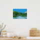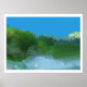 Uma bela pintura de abstrato verde, um rio e o céu azul
