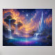 Uma paisagem surreal radiante ganha vida com cachoeiras brilhantes, céus espumantes e nuvens luminosas em brilhante contraste. Espires cristalinas e ilhas flutuantes brilham em cores brilhantes, enquanto faíscas mágicas e luz celestial criam uma cena etérea, sonhadora. Este trabalho de arte combina a beleza celestial com a maravilha da fantasia, perfeita para fãs de arte vibrante, mística e de outro mundo.