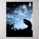 Um dinossauro alossauro olha para o céu azul brilhante enquanto um pterossauro voa acima. Este design pode ser personalizado adicionando seu próprio texto ou imagens!