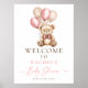 Urso de pelúcia com balões, chá de boas-vindas, menina cor-de-rosa.