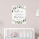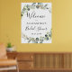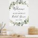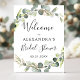 Sinal de Boas Vindas de Casamento com Eucalipto Botânico e Folha de Ouro Falso Aquarela para Casamento de Primavera ou Verão - inclui uma bela e elegante tipografia de roteiro com flores botânicas tropicais modernas e folhagens para a celebração especial do dia do casamento.