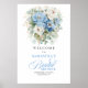 Poster Chá de Bebê Rústico com Peônia Azul e Eucalipto Be