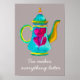 A ilustração maravilhosa de um bule de chá bonitinho com Tea faz com que tudo seja mais citado. Decoração azul. Um tema de amantes de chá coloridos para bebedores de chá. Um presente bonito para amantes de chá. Arte de cozinha.