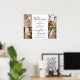 Dê as boas-vindas aos convidados em um chá de panela de casal elegante com um cartaz personalizado de colagem de 4 fotos 18"x24". Imagens e todo o texto são simples de personalizar. (DICA DE COLOCAÇÃO DE IMAGEM: Uma maneira fácil de centralizar uma foto exatamente como você deseja é cortá-la antes de fazer o upload para o site da Zazzle.) O design moderno minimalista preto e branco apresenta quatro imagens de sua escolha, caligrafia elegante estilo manuscrito e tipografia vintage elegante. Este sinal de boas-vindas de casamento de casal é uma maneira elegante de compartilhar fotos de noivado como parte das decorações de celebração do seu dia especial. Parabéns à noiva e ao noivo!