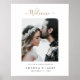 Este simples casal de boas-vindas do chá de modelo de de fotos chic apresenta um design limpo e moderno. Demos a esta design minimalista um salto de pântano com "Bem-vindo" acima da foto em uma fonte moderna fluente que consegue ser elegante e vivo ao mesmo tempo. Adoramos o arco gracioso do 'W', assim como o florescimento estilizado e alongado nos dois extremos do mundo. Para destacar este aspecto da design, escolhemos um tom de ouro elegante, às vezes chamado Califórnia Dourada para a parte de 'Bem-vindo' da design. Mas você pode mudar isso para qualquer cor que quiser! Você pode facilmente editar qualquer texto de acordo com o seu gosto pessoal, e também pode alterar a fonte e a cor do texto. Você poderia, por exemplo, mudar 'para nosso chá de casamento' para 'para nosso chá casal' ou qualquer outra coisa. Use as ferramentas intuitivas de design, sua foto favorita e sua inspiração para fazer com que este chá de casais seja poster único! E por favor, verifique nossa coleção de sinais de boas-vindas de casamento para obter mais na moda maneiras simples de dar boas-vindas aos seus hóspedes, não apenas para o chá de seus casais, mas também no dia do seu casamento e em outros eventos que o levaram também!