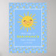 Jogue o chá de fraldas temático "Você é meu sol" mais fofo de todos os tempos com esta adorável decoração personalizada de sinais de poster de chá de fraldas. Bem-vindos aos seus convidados com esta faixa azul e amarela personalizada, luz do sol e céu nublado. Este sinal de boas-vindas a chás de fraldas é totalmente personalizável. Para editar o texto, clique em "personalizar este modelo". Os gráficos usados neste design foram desenhados à mão pelo fazer OhMyStarling como uma peça única para o tema do chá de fraldas de sol. Esta decoração de chá de fraldas apresenta uma ilustração do sol sorridente, texturizada, e um padrão divertido de sol e céu nublado.