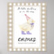 "Um pouco de patinação está a caminho". Celebrar com esta festa de chá de fraldas de pato fofo! Um pequeno patinho de aquarela com chapéu de aniversário. Gaiola castanha.