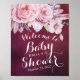 Modelos Poster de Sinal de Boas-vindas do chá de fraldas - Imagem Natural de Boho Boho Natural de Cor-de-Água Elegante e Script Manuscrito no Plano de Fundo do Céu Vermelho Burgundy. Todo Estilo De Texto, Cores, Tamanhos Podem Ser Modificados Para Ajustado Das Suas Necessidades.