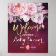 Pôster Chá de fraldas Bem-Vindo Penas Florais Vermelho Bo