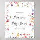 Este clássico poster de boas-vindas de chá de fraldas floral selvagem colorido é perfeito para um chá de fraldas rústico. A design apresenta flores silvestres brancas, amarelas, roxas e brancas com folhagem em fundo de rosa e aquarela verde.