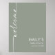 Chá de fraldas de boas-vindas verde do Sage do Script Girado. Disponível digitalmente ou impresso. Um moderno design tipográfico minimalista com Welcome em um roteiro definido e rotacionado em branco em sábado.