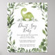 Dê aos seus hóspedes uma direção encantadora com nosso dinossauro não diga sinal de atividade de chá de fraldas, com cor d'água verde eucalipto garland e uma elegante letra de estilo manuscrito.