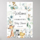 Poster Chá de fraldas de Folhagem de Animais Safari Bem-v