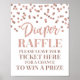 Sinal de rifa de fralda para chá de fraldas em um padrão de confete ouro rosa.