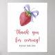 Convite para chá de fraldas bonito com ilustração aquosa de morango e arco.