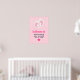 Poster de chá de fraldas personalizado com uma imagem adorável de pegadas cor-de-rosa de menina com um contorno branco pesado. Bolinhas brancas sobre um fundo rosa atrás da ilustração. Um pouco de cor rosa por baixo do texto.